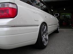 因みに235/40-18です。 このサイズの適応リム幅は9,5Jまでなので、決して違法なヒッパリでは あ り ま せ ん |
