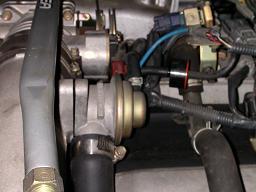 真ん中の黒いバルブがスロットOFF時にストロークして、圧力を黒いホースの繋がる先(エアクリーナー又はタービンの吸い込み口に着くサクションパイプ)に放出します。