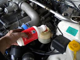 因みに使用しているのはオメガのフルードです。これはサーキット走行をして高回転に回すと、泡立ちして噴出してしまう純正みたいに噴出す事はほとんど無いので、とても好評なんです♪ |