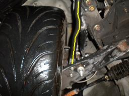 社外ピロテンションにして、フロントに太いホイール履くと、ロッドとタイヤが干渉しちゃうんですよね