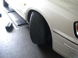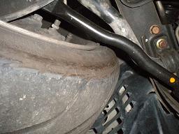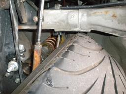 タイロッドを調整していない状態ですが、今度は左イッパイに切った状態です