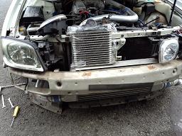 インタークーラーのパイピングが邪魔してフェンダー内にセットするのは難しそうだな・・・