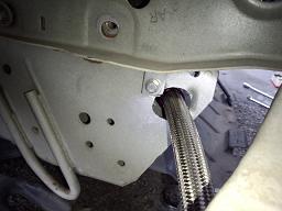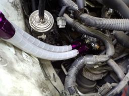 コアから出たホースはインタークーラーパイプを通す穴のフロント寄りに穴を更に増やし、そこからここに繋ぎました |