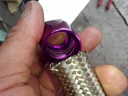 そしてホースの内側にもオイルを塗っておき、そこにフィッティングをねじ込んでいきます