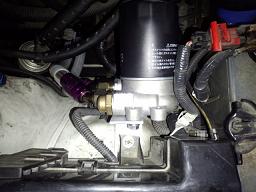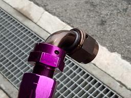 エンジン側ブロックにはストレートフィッティングを、移動ブロック側には45度?のを使ってセットしました