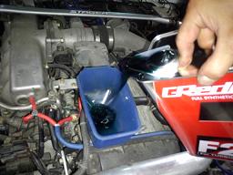 今まではエレメント交換時に4,5Lくらい入りましたが、今回はコアやホースの分が増えたので5,8Lくらい入りました