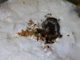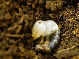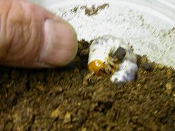 幼虫の頭を穴に入れます