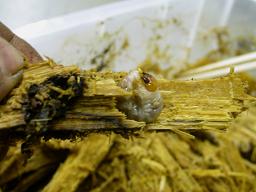 オオクワの幼虫はこの菌糸のえさを食べる事によって、自然界ではありえないサイズにまで大きくなるのです