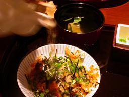 ちょっと分かり難いと思いますが、なんでもこの ひつまぶし ってのは、お茶漬けのようにだし湯をかけて食べるらしい。