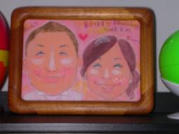 自宅に飾ってあった、奥様と一緒の似顔絵です。