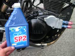 OILクーラー付ければ温度が下がるでしょ?油温が下がれば10W40位でもいいんですが、あえて今回は空冷なので15W50を使用します