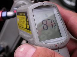どうせならキチンとチェックしましょうという事で、赤外線を使った温度チェッカーで油温のチェックをしたいと思います