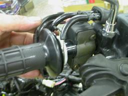 付属のスロットルを説明書通りに、ブレーキマスターの下側を通す様に着けて、スロットルの遊びを調整します