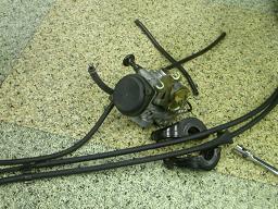 2スト用キャブはスロットルバルブが直接ワイヤーで開閉される強制開閉式です