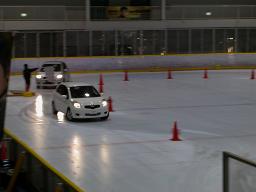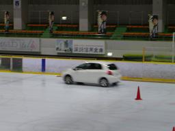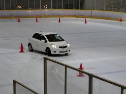 比較方法は、屋内のスケートリンクを全く同一の車種で、同じタイヤサイズ・空気圧で乗り比べます