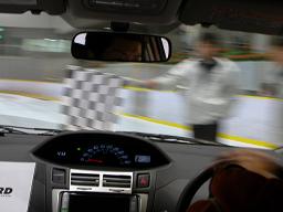 スタート直後のパイロンでは、路面がスタート時のホイルスピンで、やたら濡れているので進入が非常に難しいです |