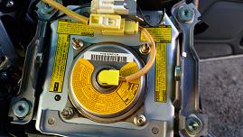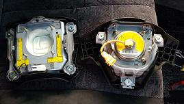 エアバックのインフレーターも流用できればいいなぁと思い、分解してみたらカプラー形状以外は寸法は同じという事がわかりました |