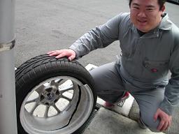 お兄ちゃんは縁石でホイール割りました