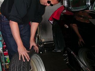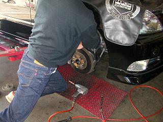 無事に取付けも終了し、ホイールを取付けようとするオーナー。