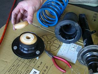 さて写真はサスをばらしたところです。手に持っているのが以前、カットしすぎたバンプラバー