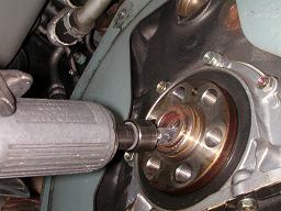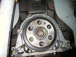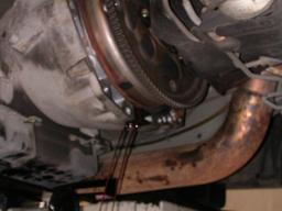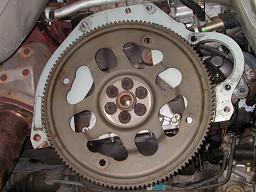 マニュアルの場合はミッションとエンジンを固定しているボルトを抜けばいいのですが、ATなのでコンバーターとフライホイールを固定しているボルトを抜かなくてはなりません |