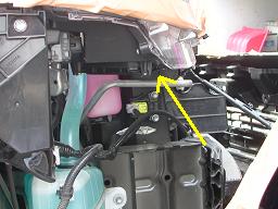 運転席側のヘッドライト裏側です