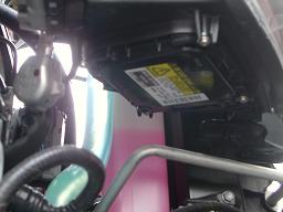 本当はスマートにつけるには純正バラストを取り外して付けますが、あえて今回はライト裏辺りにバラストを設置する事に。だってバンパー外すの大変だし |