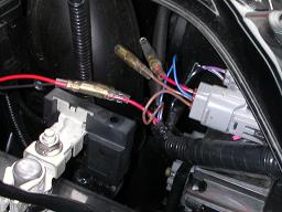 車体ハーネス側の+線とリレーハーネス+線を。