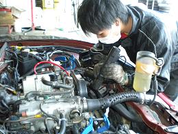 排気漏れ・オイル/水漏れ等をチェックして、電動ファンが回るまで暖機運転をします