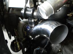 この後最後にインタークーラーのパイプを装着したら、ラジエーターの電動ファンにパイプの一部が干渉してしまったので、説明書では取り外しする純正ステーを加工して取り付けて、固定しました