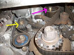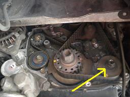 上のプーリーは調整が厄介なテンショナープーリーです |