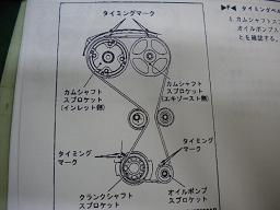クランクプーリーを何回転かしていると、カム、クランク、オイルポンプ、バランサーの合いマークが一致します