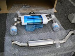 純正のは内部がどうなっているかは分りませんが、アミューズのは2つに分かれた後は、独立したサイレンサーを通って各々排気する構造でした