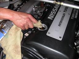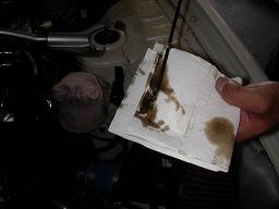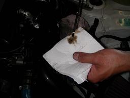 この汚れ具合を綺麗な布等に付着させ、洗浄後のエンジン内部の汚れの取れ具合を確認します