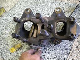 今この状態はリア側の排気をさえぎって、フロント側の通路にガスを送る状態です