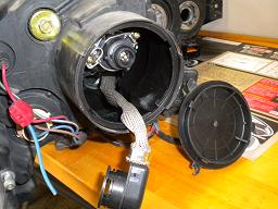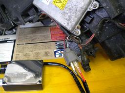 純正バラストから伸びているD2カプラーは使用しませんので、ライト奥でばたつかないように固定します
