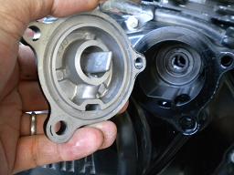 蓋の窪みやエンジン側にもベッタリと鉄粉が残っていました