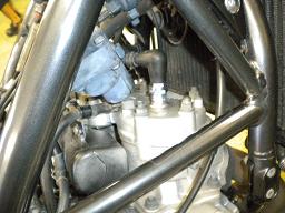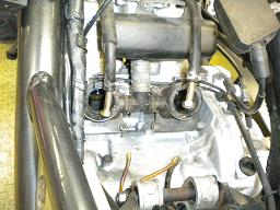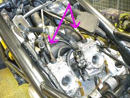 キャブには冷却水を回して霧化特性を向上させる為にホースが繋がっています