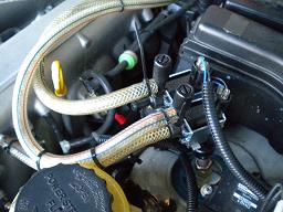今回はピンクの所のホースをカットして8パイの三つ又を取り付けて、ここで吸い込むようにしました
