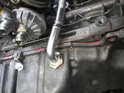 オイルプレッシャーセンサーが付く所から、タービンへのオイル供給をおこないます |