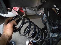 ある程度ジャッキをおろすと、この様にスプリングは簡単に外れてくれます