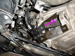Mさんのご要望で、ミッションオイルをオメガにして欲しいとの事でしたので、オイルを抜き取ります