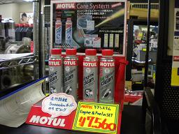 やはりこの手の車両は走行距離も多めの物がほとんどなので、エンジン内部の隅々まで汚れを落としてくれる、モチュールのエンジンクリーンを使用します