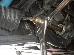 ナックルの下部を固定しているジョイントは、ロアアームの端のこの部品をそっくり外しての交換です