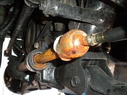 タイロッドだけじゃなく、ステアリングラック側まで思いっきり錆びてます |