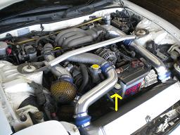 因みに→の所に、HKSのステーに純正タンクは固定されています |