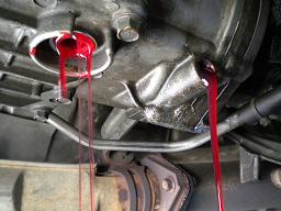 因みにFDもFCも本来は左側のドレンを抜いての交換ですが、当店では後ろ側からも抜きます