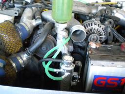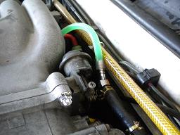 スロットルボディに付いているサーモワックスに配管されるラインが1番高い位置になります