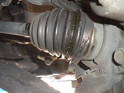 その外端に付いているグルグル角度を変えるベアリングを保護しているブーツが、ドライブシャフトブーツです