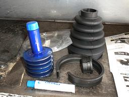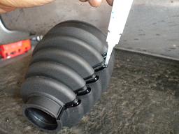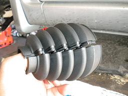 ブーツとシャフトの隙間を埋めるグロメットをまずは小さい口側に入れて、専用バンドで締め付けます